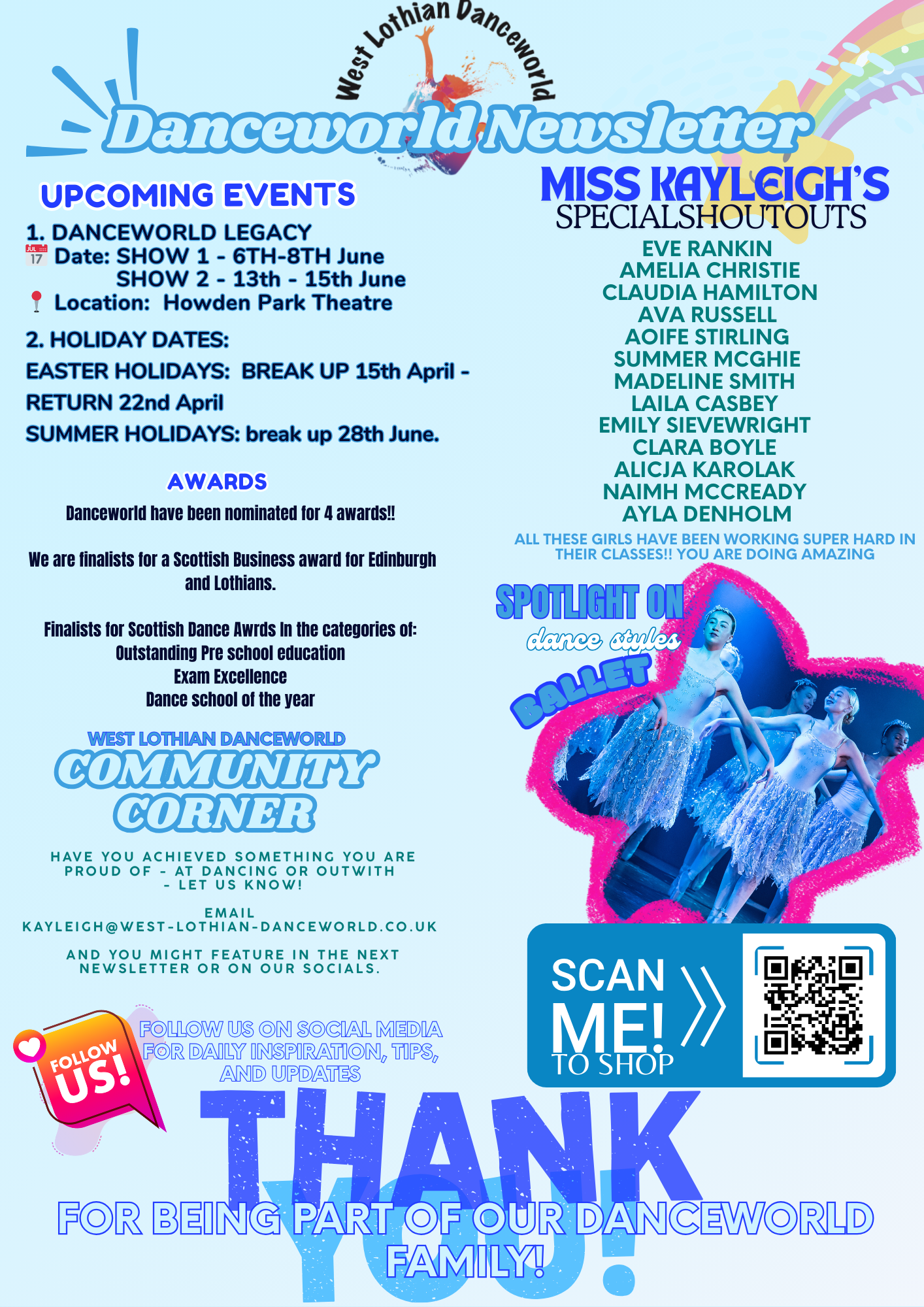 We are thrilled to bring you exciting updates, upcoming events, tips and stories from the dance community.